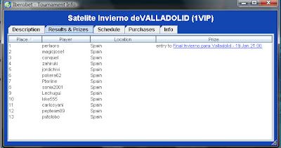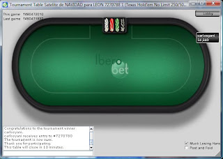 Victoria de carlosyanita en el satelite diario de Ibeobet para jugar la final del 21 de diciembre que otorgará una plaza para el torneo especial de LEON los dias 26 y 27 del presente mes con buy-in 250€+25€.