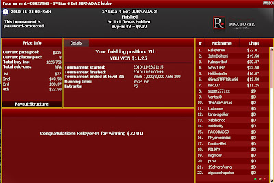 Añoche se disputo el 2 torneo de la liga en la que nuestro compañero Mix quedo 7º ante 75 jugadores, y entro en premios y puntos , tambien PI en sustitucion de Toro quedo en la 18ª posicion tambien entrando en puntos