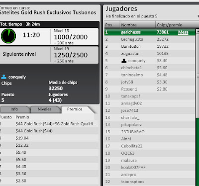 Nuestra compañera CONQUEL termino 5ª en el primer torneo de la liga de paf , pudo llevarselo pero la recta final se la atraganto y solo pudo ser quinta de todas maneras muy buen torneo que ademas del dinero la hace ganar una funda para el portatil gentileza de paf