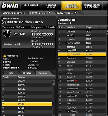 Un 3º puesto en el renovado Spanish Monday Gambler. Mejores premios garantizados ( de 500$ a 1000$ semanales) y clasificación mensual para que los mejores se midan a los profesionales de bwin en un torneo con 500$ añadidos. Después de jugarse el último Spanish Monday Gambler de cada mes natural, los 9 primeros clasificados recibirán entradas para un torneo de una sola mesa que se disputará los sábados a partir del 3 de septiembre a las 22:00 horas y en el que se repartirá un premio añadido de 500$. Y a quien consiga eliminar a Amatos o Alekhine, se le premiará también con una entrada de torneo de 54$.